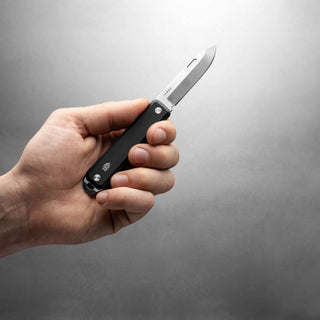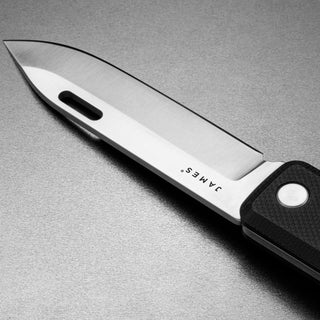 The James Ellis Slim Knife is a sleek, ultra-compact pocket knife designed for minimal daily carry. Thinner than a pack of gum, it boasts the same trusted design as the traditional Ellis but with a streamlined profile by removing the scissors. Available with either G10 or aluminum handles, and a choice between straight or serrated blades, it features high-quality Swedish Sandvik 12C27 steel. Equipped with a deep-carry wire clip, multi-purpose scraper, flat-head screwdriver, and pry bar, this knife is perfect for those seeking simplicity without sacrificing functionality.
