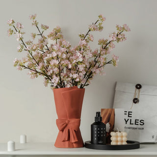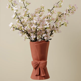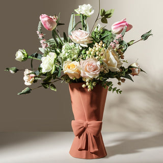Enhance the beauty of your living space with the Bouquet Ceramic Vase. Its minimalist design, featuring a charming bouquet shape and a delicate ribbon, adds a touch of elegance and peace to any environment. This vase is crafted from high-quality ceramic, ensuring durability and longevity. Its versatile design makes it suitable for various home decor styles, whether you prefer a modern or classic aesthetic. Use it to display your favorite flowers or as a standalone decorative piece to create a serene and inviting atmosphere. With its stylish and functional design, this ceramic vase is a perfect addition to your home decor collection. It also makes a thoughtful and meaningful gift for housewarmings, birthdays, or any special occasion.