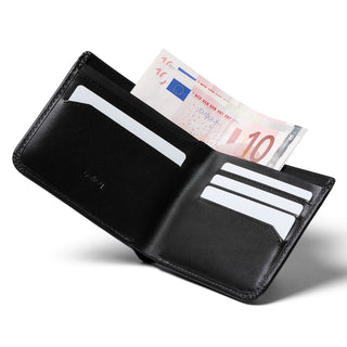 Crafted from high-quality, eco-tanned leather, the Hide & Seek HI wallet provides a luxurious feel while supporting sustainable practices. Its interior includes a protected section for additional cards and business cards, allowing you to keep your essentials organized and secure. For those who still carry coins, a discreet hidden coin pouch offers an additional layer of convenience.