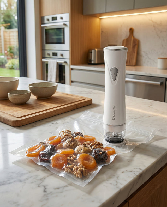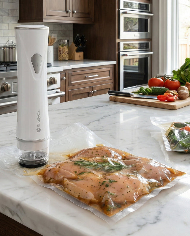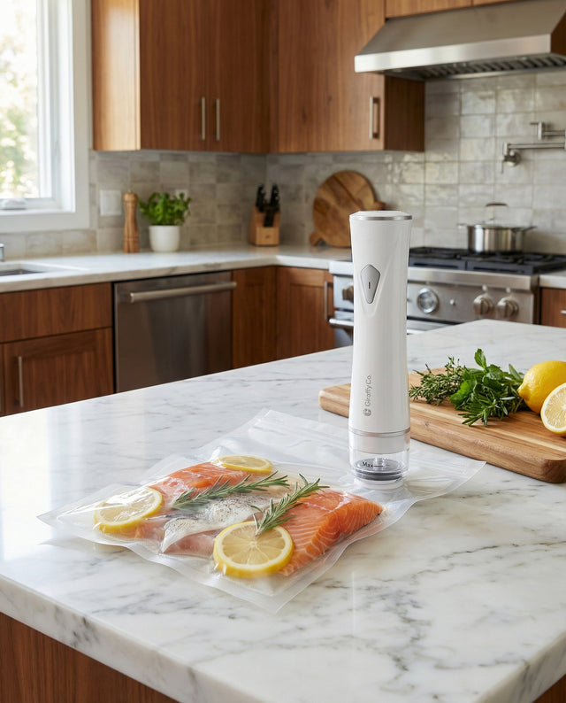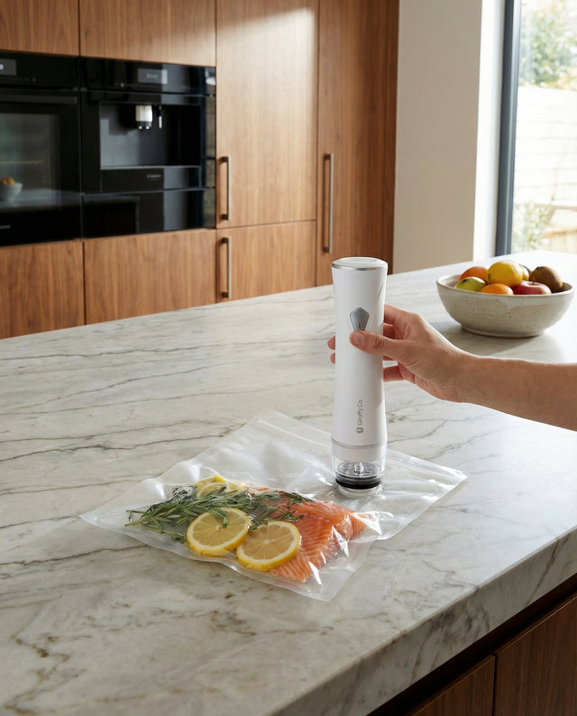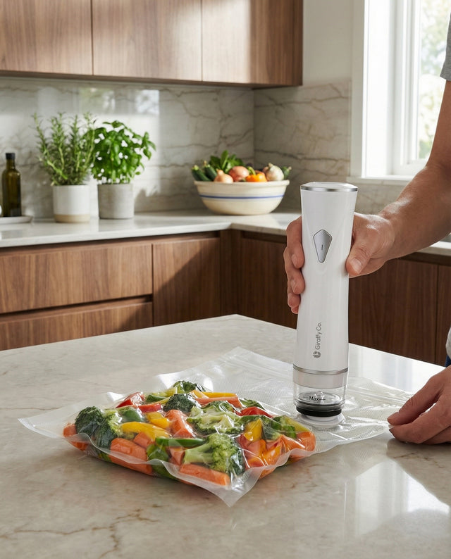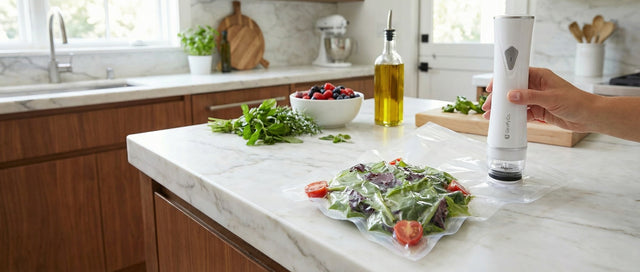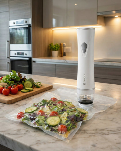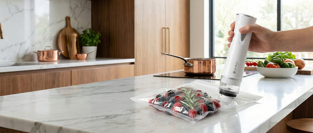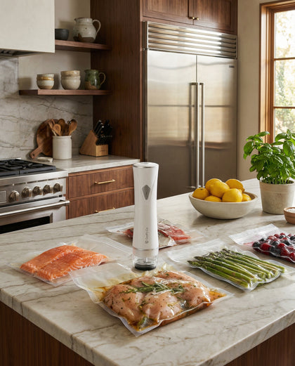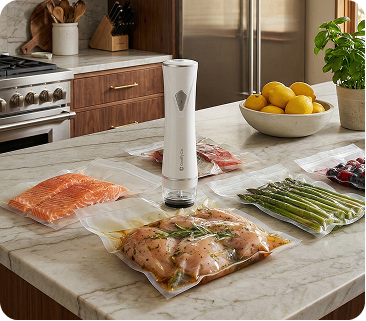 Handheld vacuum sealer for snacks, leftovers & meal prep.